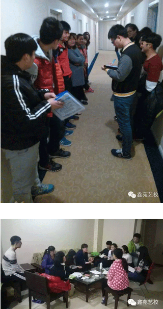 艺考期间每晚七点,四个考点的老师们集中学生给学生开总结大会,会议包括两部分,一是今天发挥的如何,优缺点在哪;二是第二天考试的考试安排及注意事项。每晚如此,亦在让学生们拿出最好的状态迎接考试