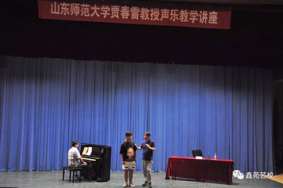 贾春雷教授声乐大师课 7月26日,鑫苑艺术教育暑期新一季大师课正式开启啦,本次大师课在山东师范大学音乐厅举行,特邀请山东师范大学贾春雷教授莅临授课。新学期伊始,同学们都非常珍惜这次与教授面对面学习的机会,很多同学都带了笔记本随时记录下声乐专业在学习和训练中的重要方法。贾春雷教授在声乐演唱中的气息、作品处理、高音的训练方法等都做了细致入微的讲解,并亲自示范,同学们收获满满!